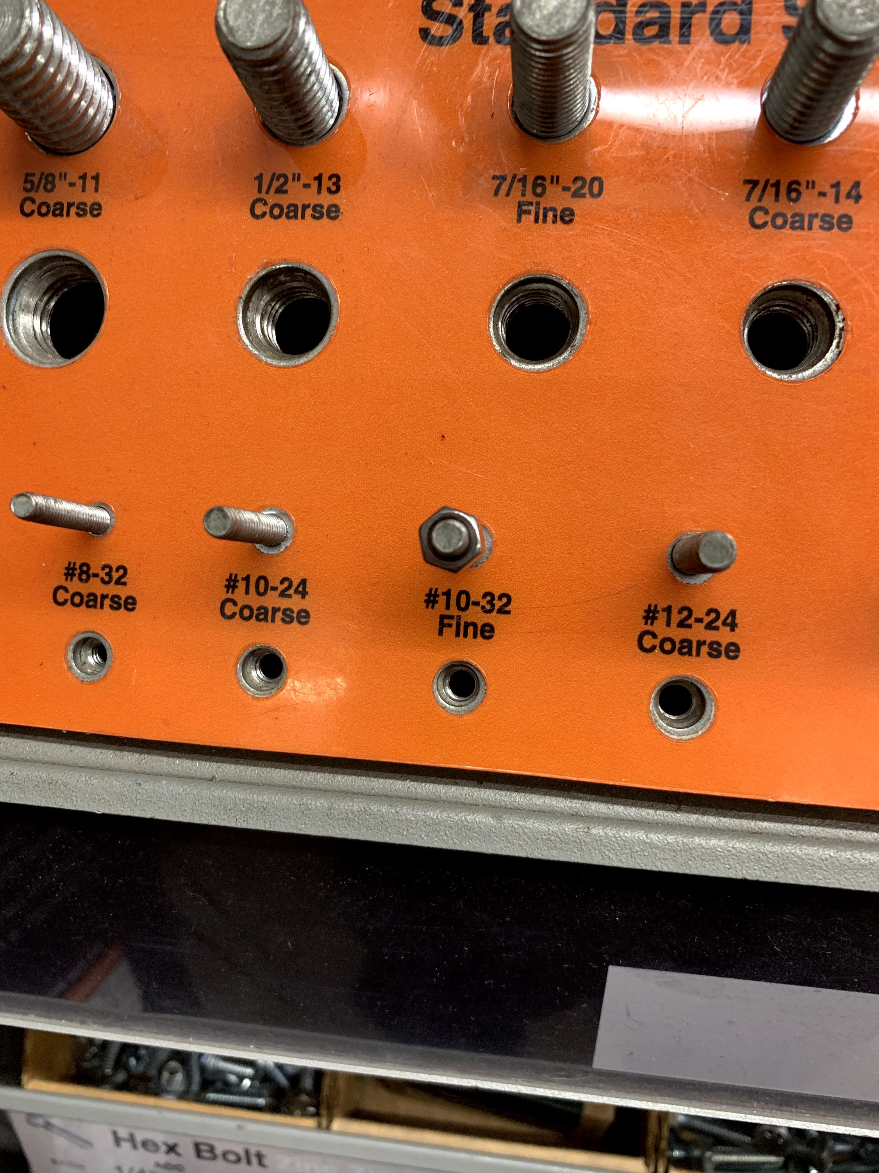 Next I took my surviving radial to the hardware store. Hopefully you have a bolt from the one radial that you can put on the sizing rig in the screw isle.