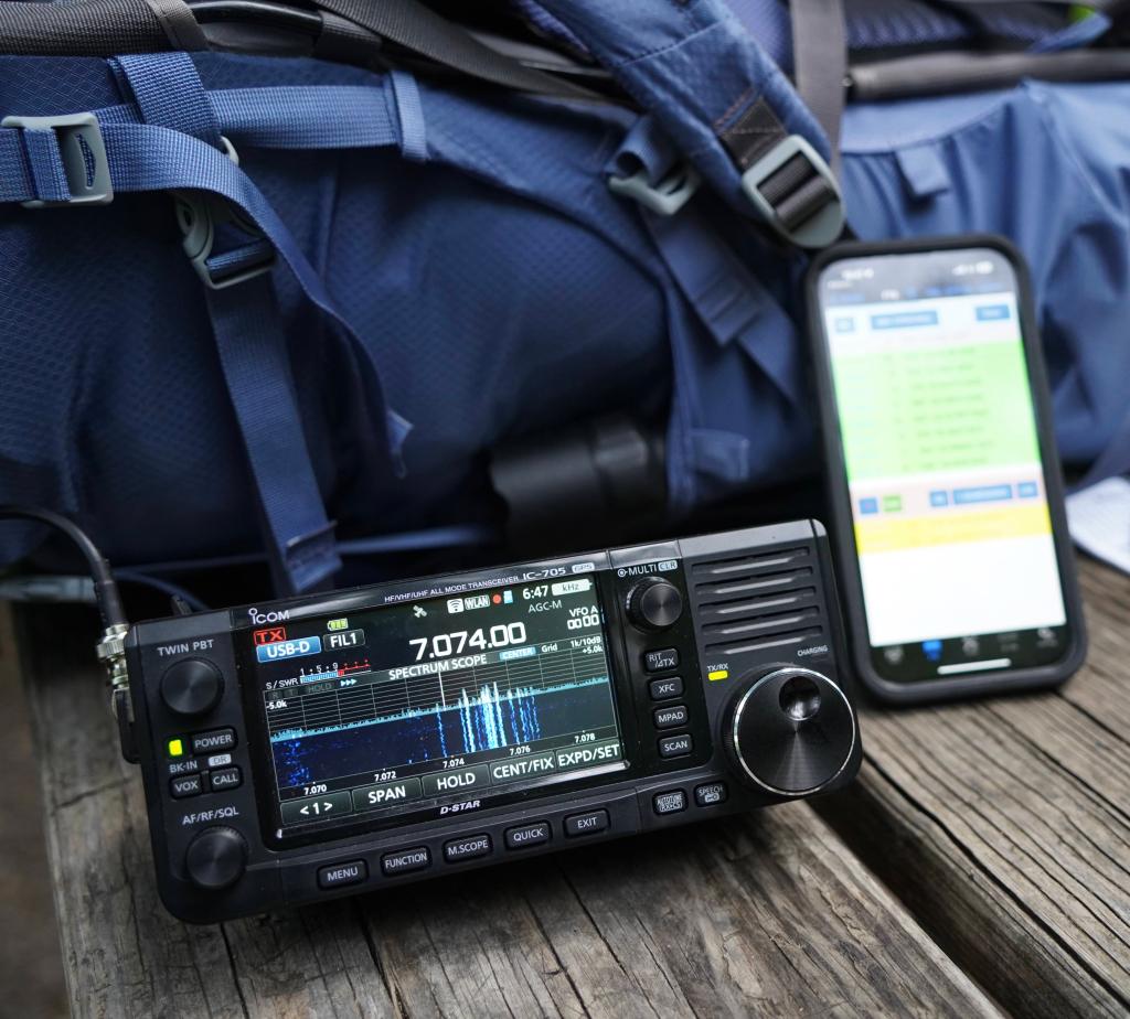 - ICOM 705 radio (connectivity to cell phone using wifi), running up to 10 watts