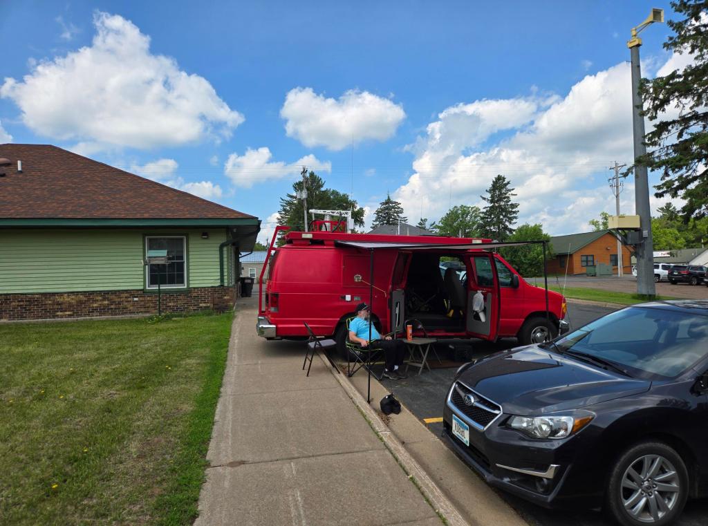 By accident a TV news gathering van popped up. It was a stretch Ford E-350, so a V10 engine and a tow rating in the 9000# class. It was not four wheel drive, but had a built in air tower and a single operating position in the back. Our deployment use cases normally involve a large tower, genset, and office with space for two persons. Our weather is often poor and snowy- hence the four wheel drive.