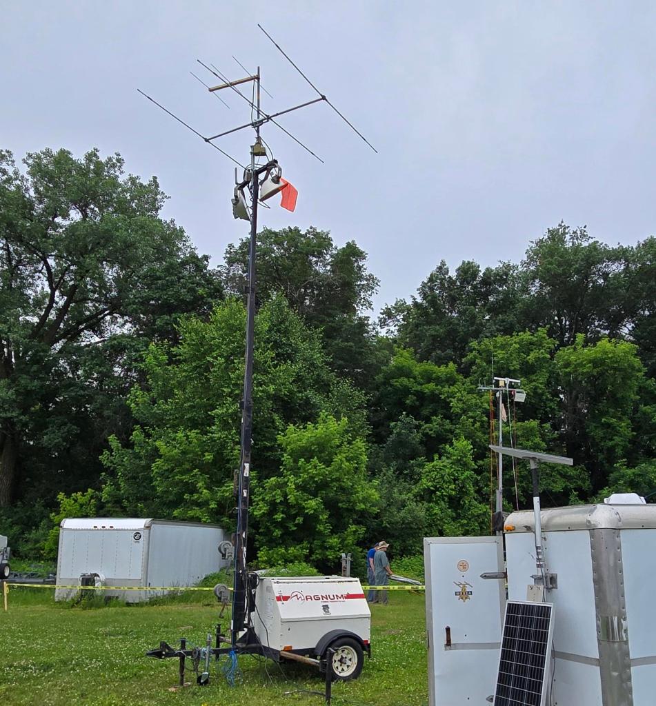 Adding a ground rod and some #8 wire we were set. I re-did the AC wiring to remove the offending add on box and now the genset AC wiring all went to the breaker first. It just needs more clean up and a fire extinguisher. Seen below with a 6 meter beam it seems to enjoy ARRL Field Day 2025.