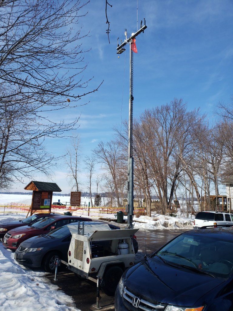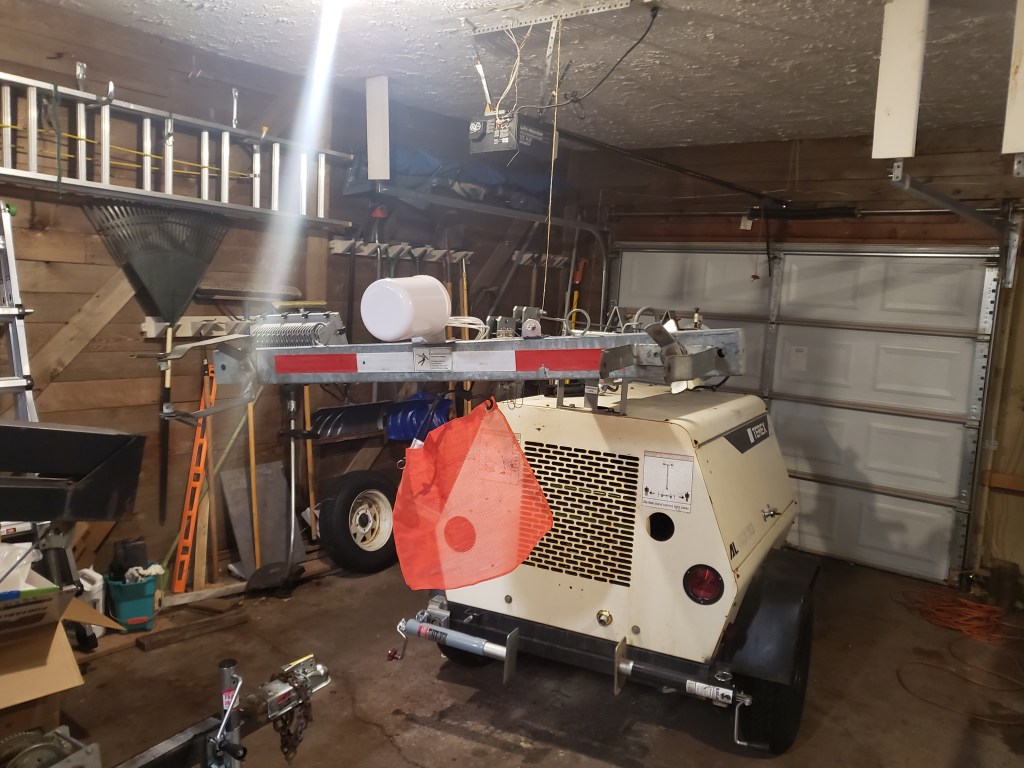 30′ class Terex AL4000. 30′ galvanized steel tower. Original Kubota D905 diesel was just the block and box of parts. Our engine guy says the center cylinder seriously overheated and probably cracked the heads. Rings are broken on piston #2. So it’s gone- a Sportsman 4000DF (Propane 3500W ) is installed + 20# onboard propane. The old generator is in our parts hoard. One group 27 battery. AC shore power. Full 5G mesh array. 150W LED floodlight. 6DB six port Wi-Fi antenna. UHF/VHF antenna. Now with Pete. He has a plan to add a 7-pin trailer plug to allow truck/RV battery charging.