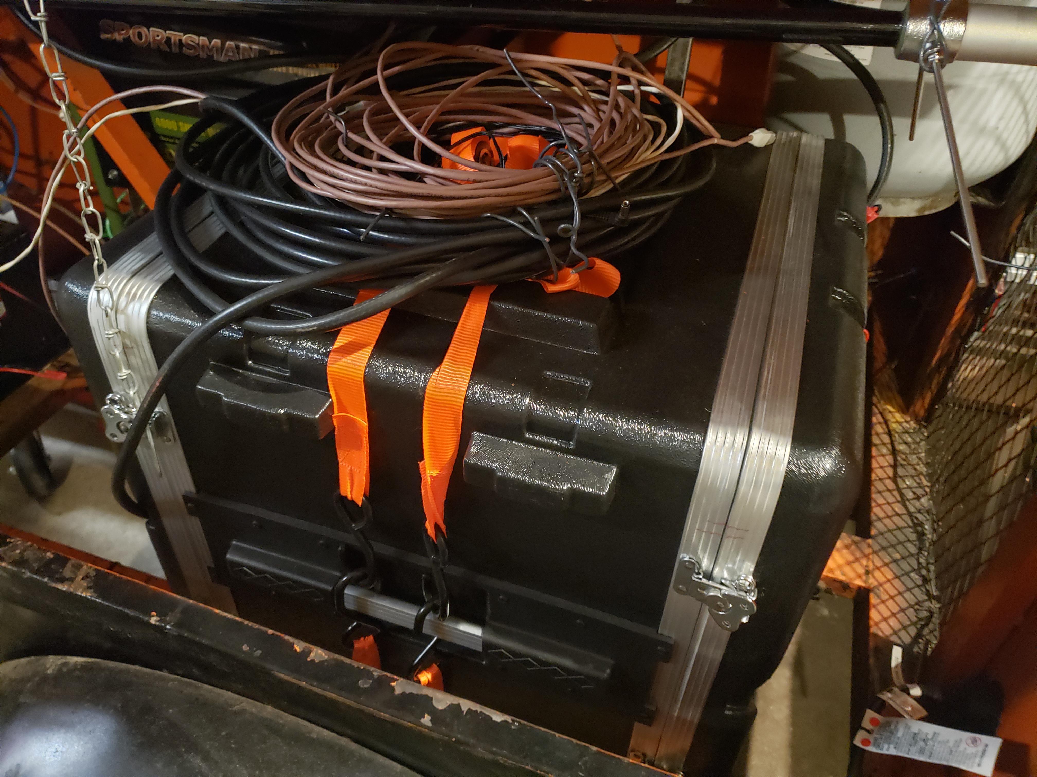 1985 Over-Lowe. 30′ rotating steel mast. 3.5KW propane/gas generator, 20# onboard fuel (10 hours minimum). 10U enclosed rack space. 2x Group 27 deep cycle batteries. 2x 15W onboard solar. 115V shore power inlet. 12A dual port marine shore power battery charger. 150W LED floodlight.